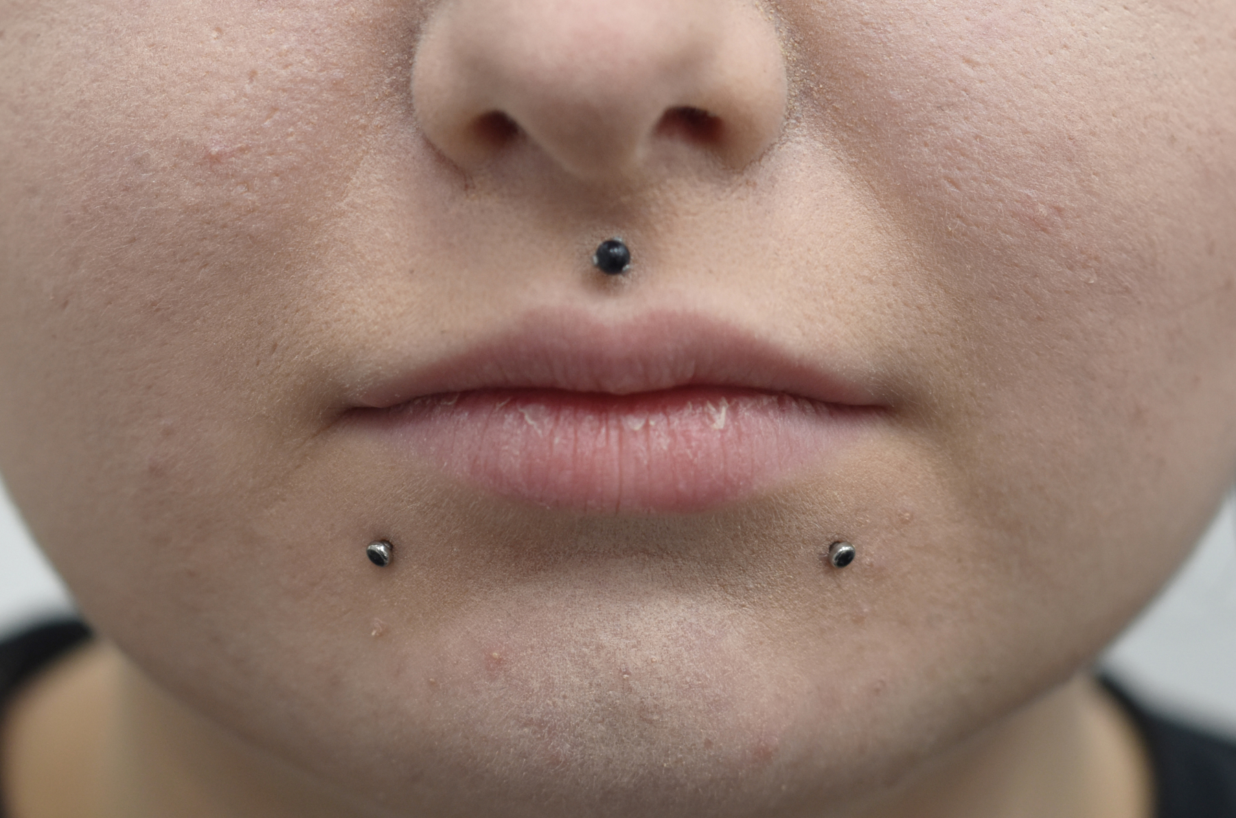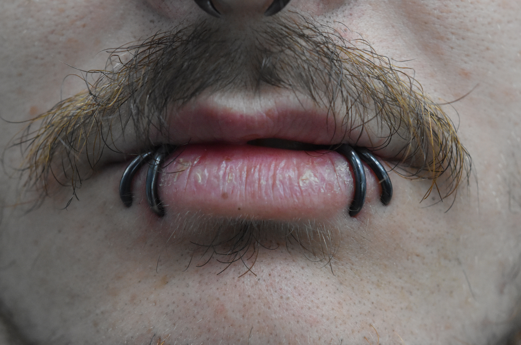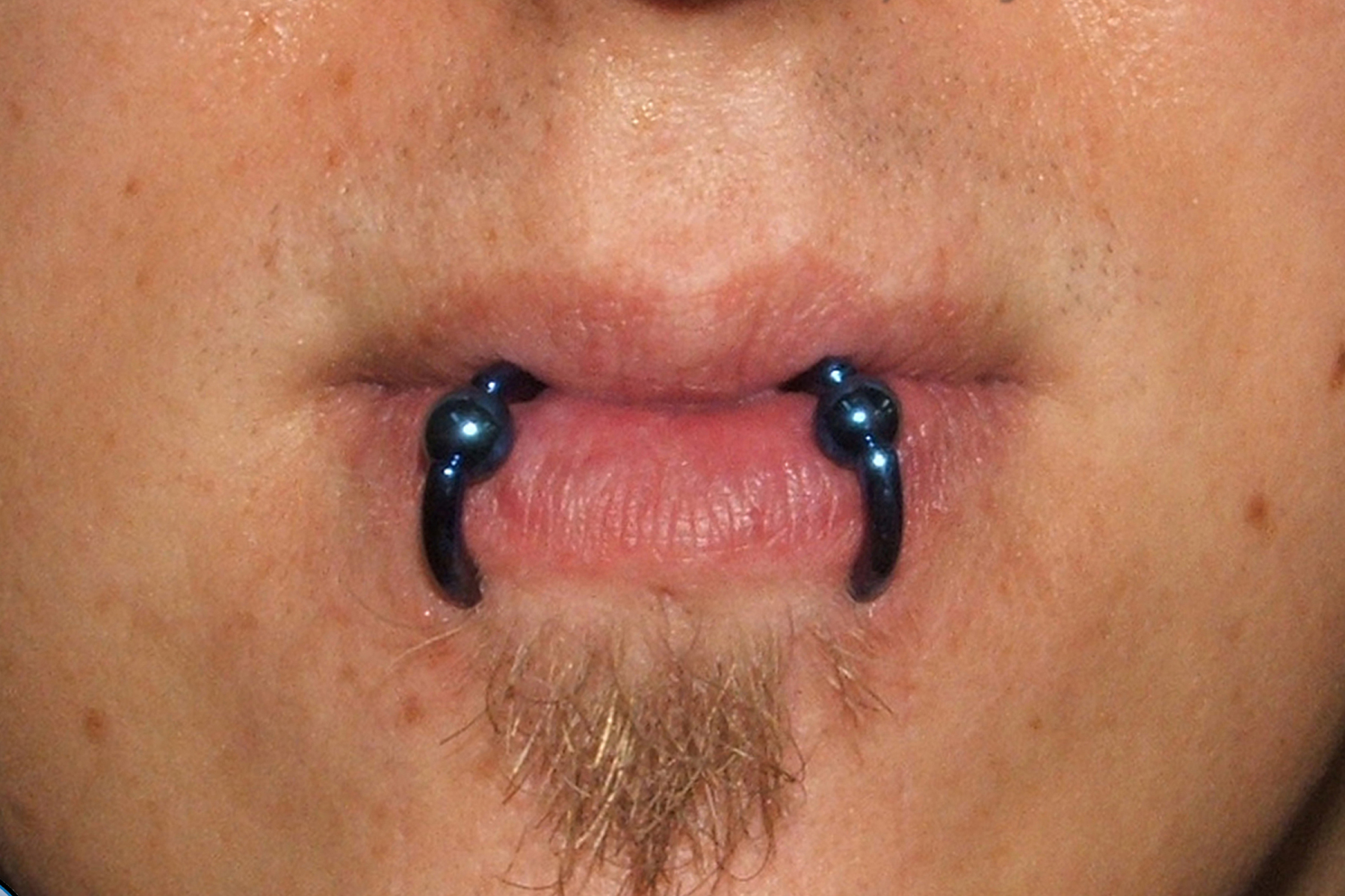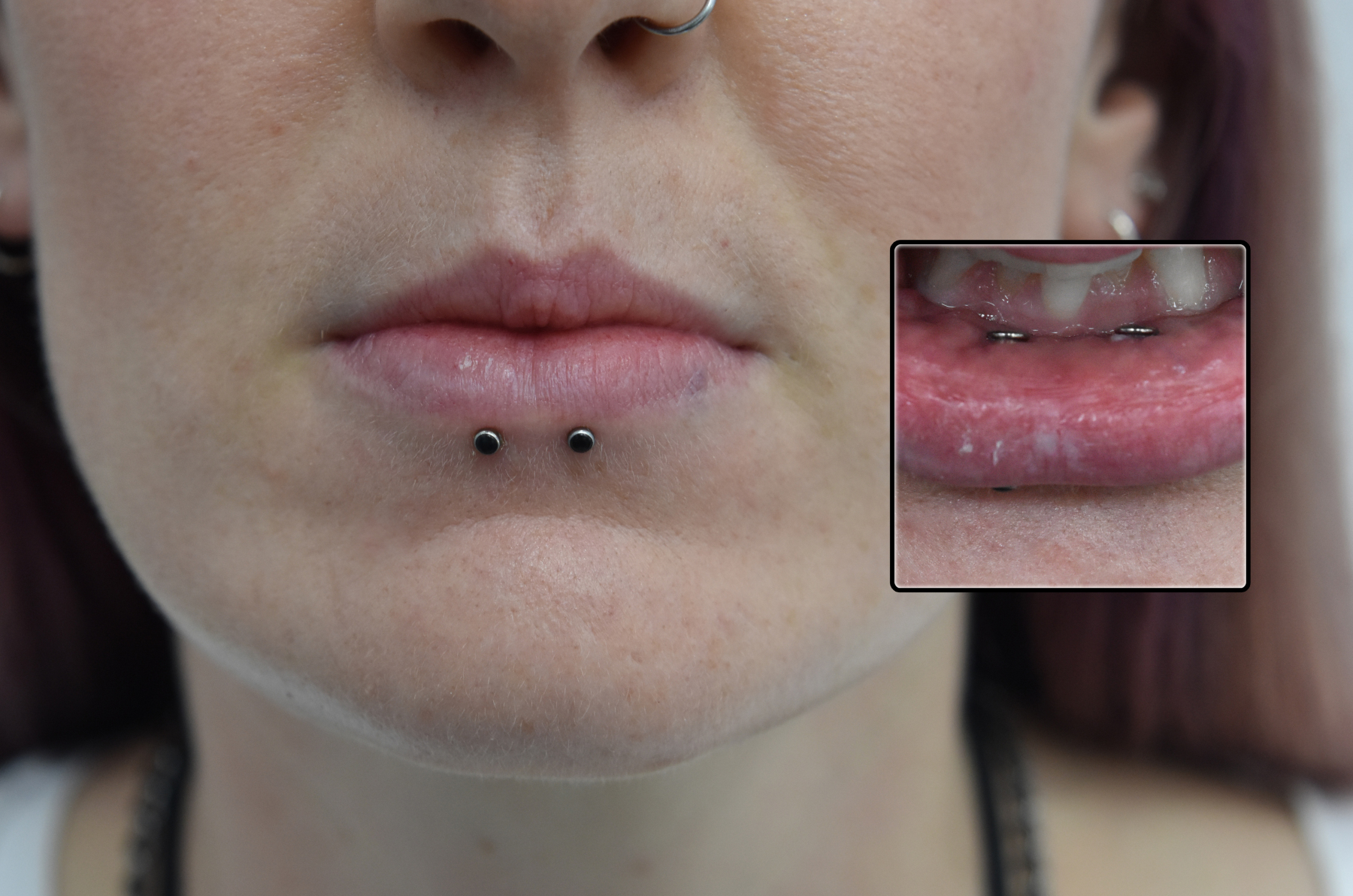 (BOTH ON ONE SIDE) MULTIPLE LOWER LIP PIERCINGS