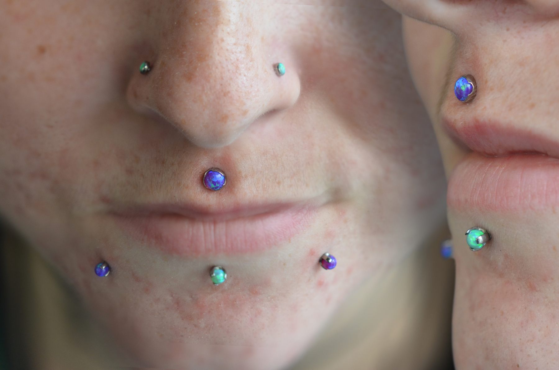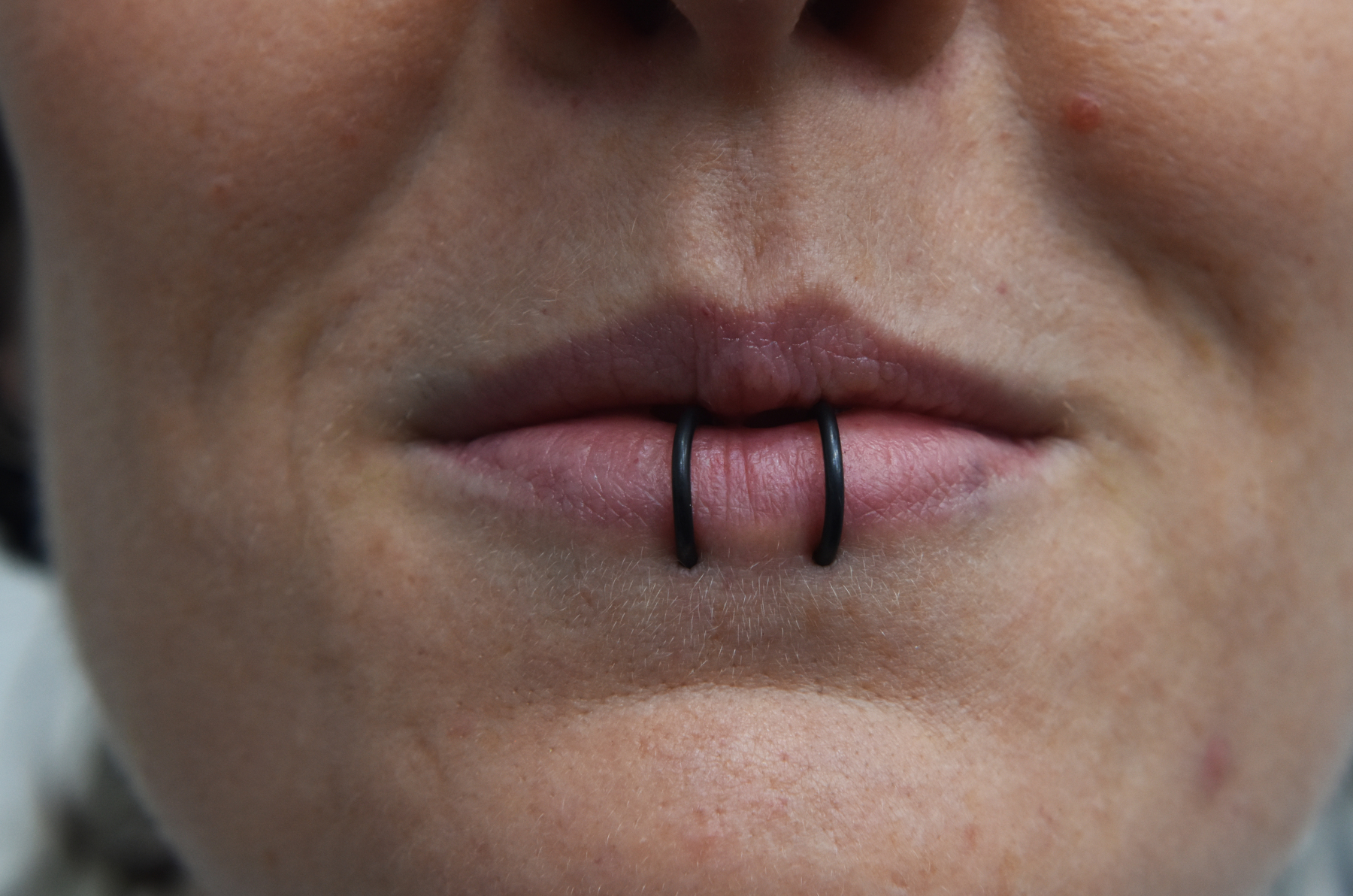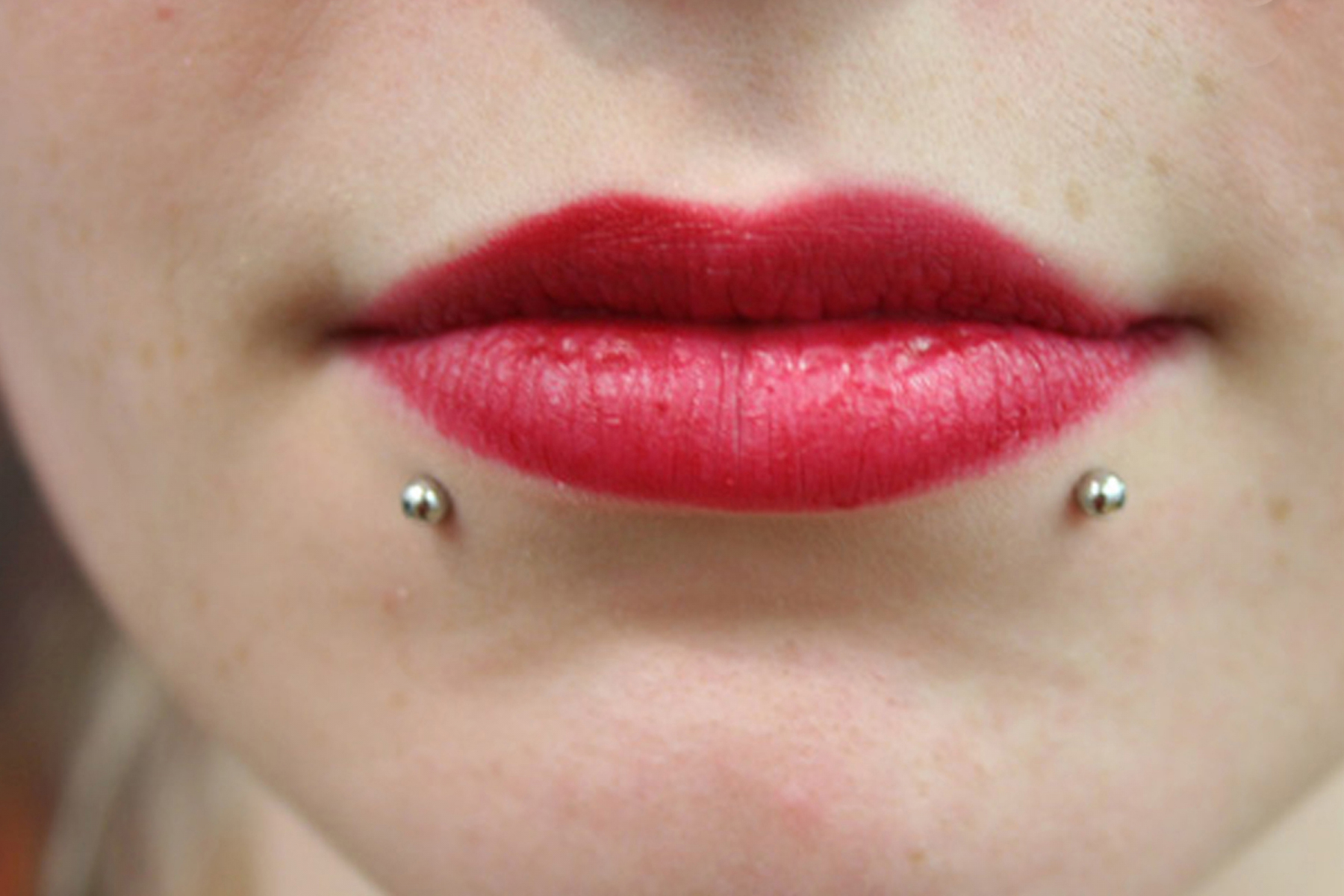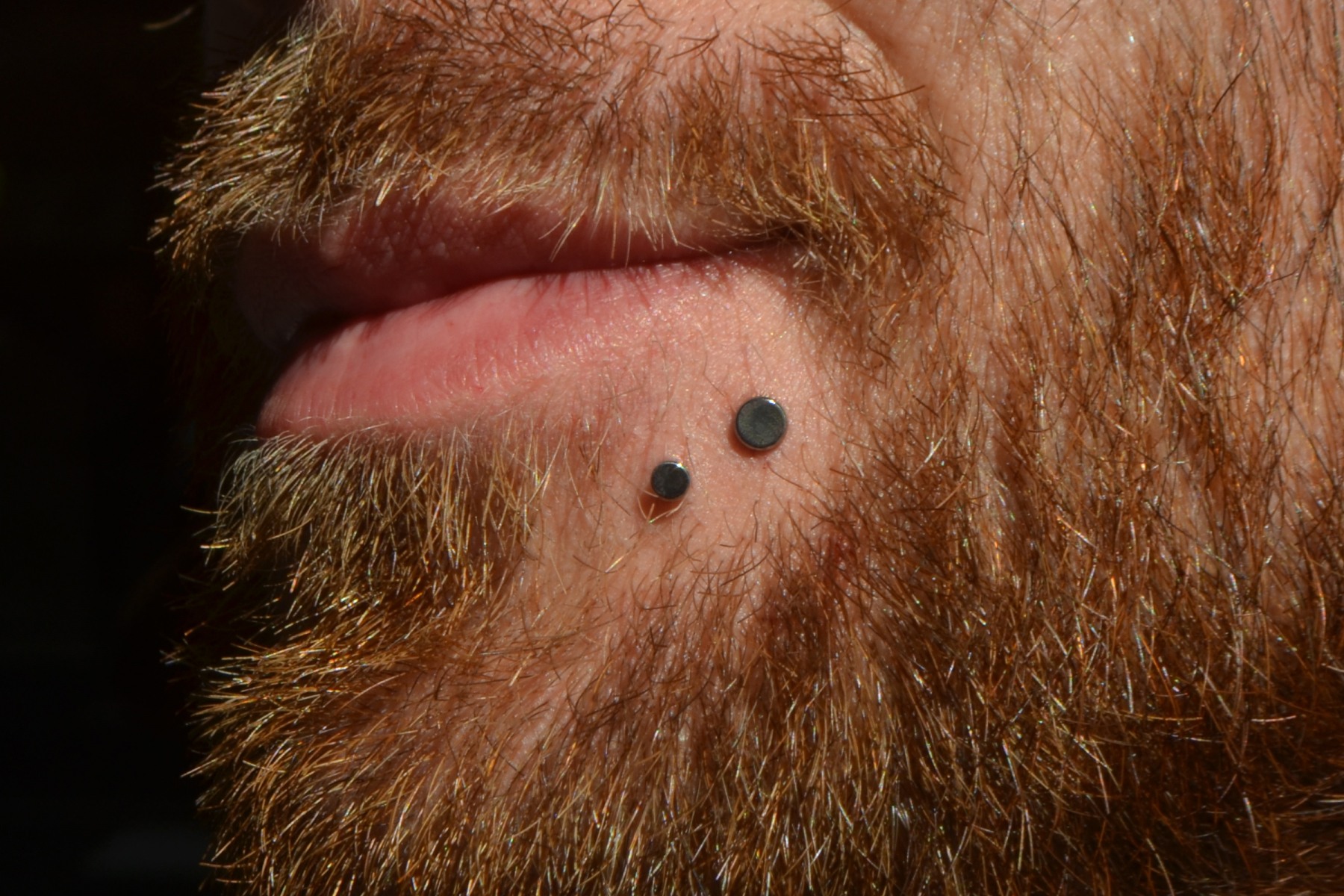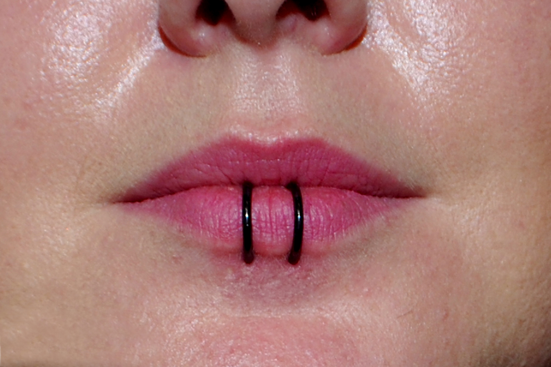 (BOTH ON ONE SIDE) MULTIPLE LOWER LIP PIERCINGS