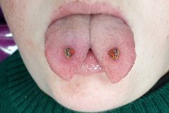 Tongue piercings are usually a very easy piercing to get done and heal quite fast due to the vascular nature of the tongue. However, that is also why talking and eating can be a little cumbersome at first as they can swell quite substantially. They can be done either centrally or in multiples, either through the centre or sides.