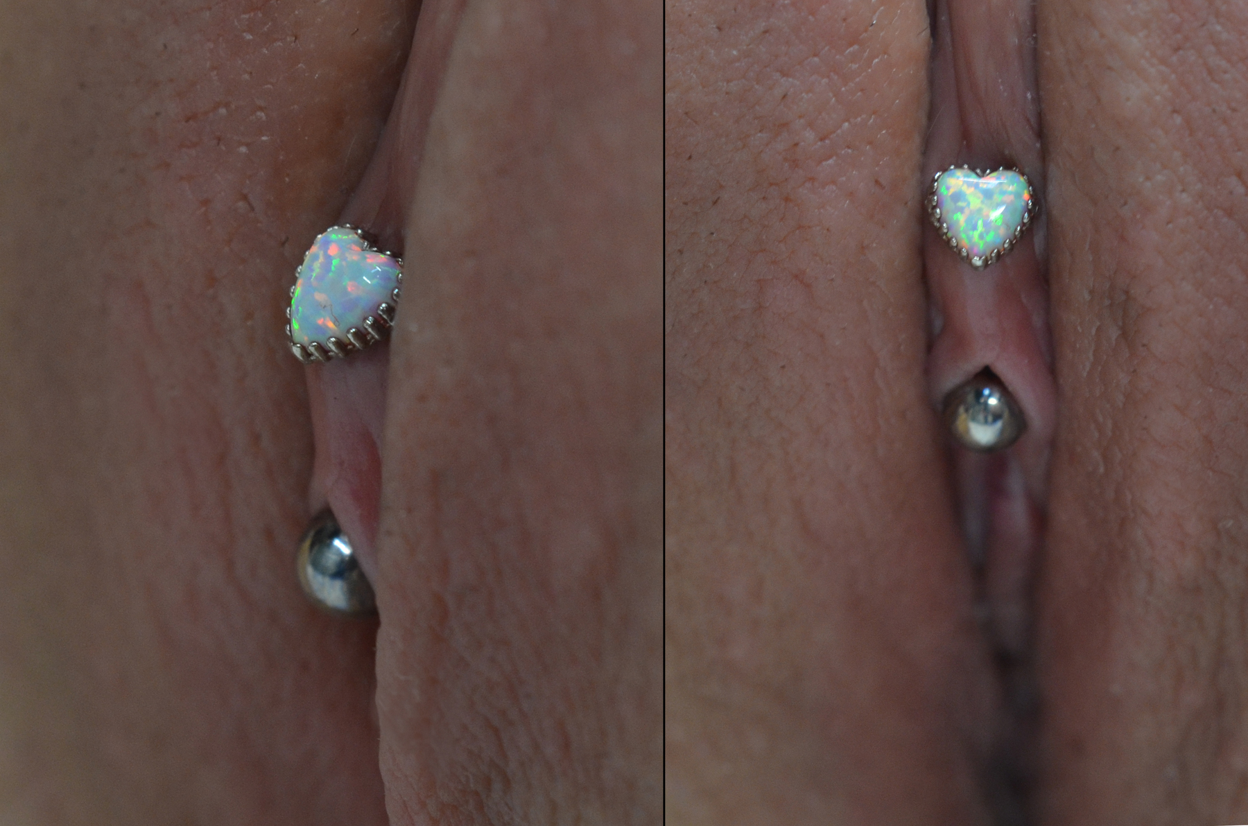 The most commonly requested vulva piercing due to its ease of healing, high chance of anatomical viability and that many wearers find an enjoyable increase in sensitivity during sexual activities.